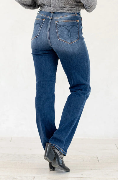 Judy Blue Tummy Control Back Pkt Embroidered Bootcut Jeans