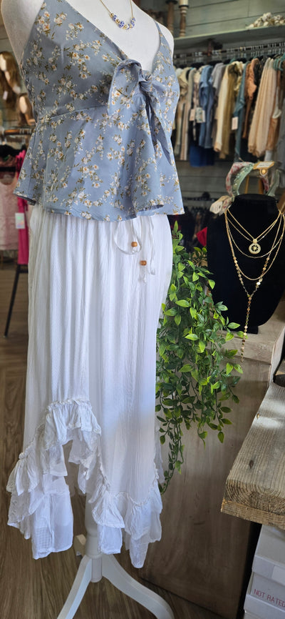 White Boho Ruffle Hem Midi Skirt