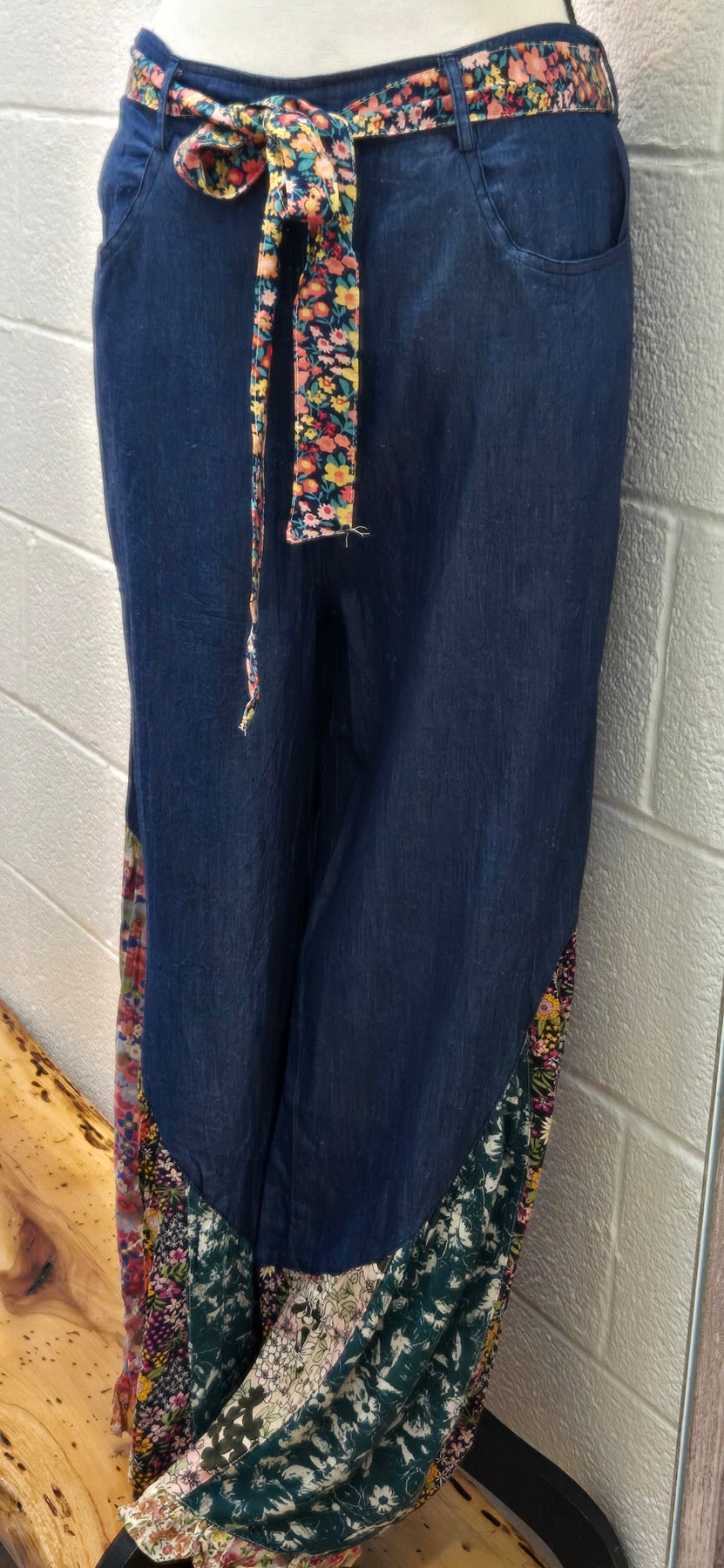 Boho fusion contrast material bottoms. Various colors available. Medium- Denim top, Large-Grey top, X-Large-Green top.
