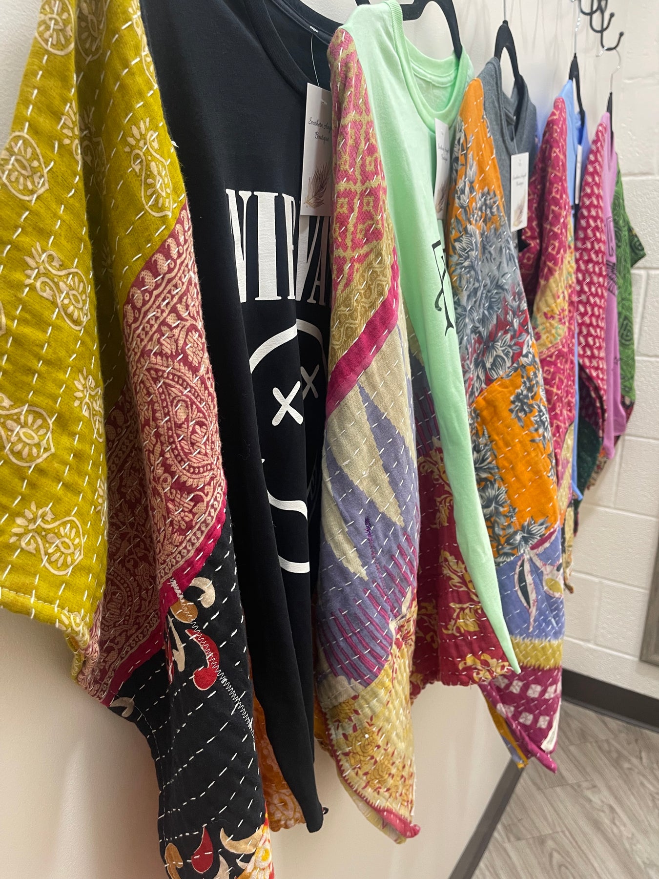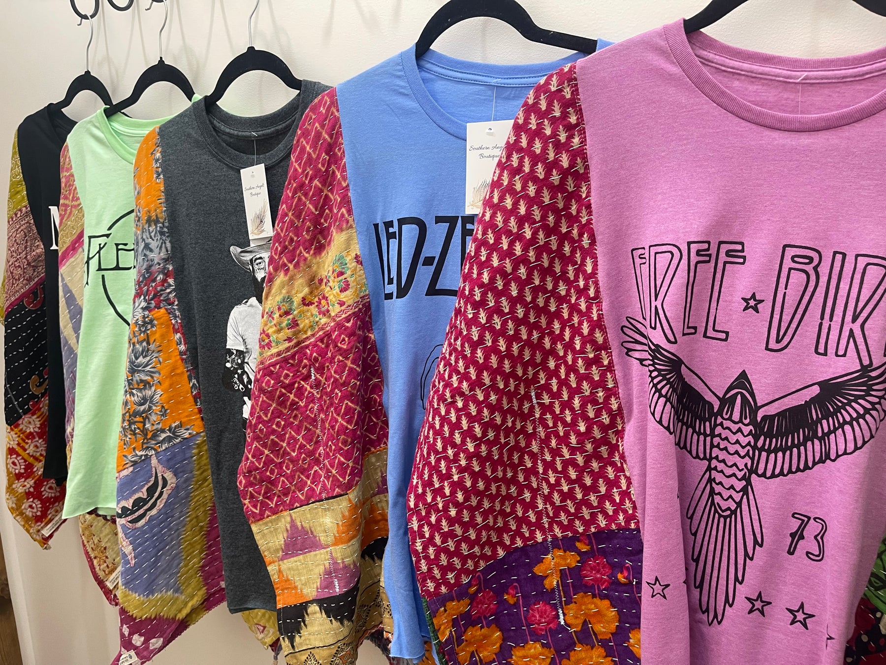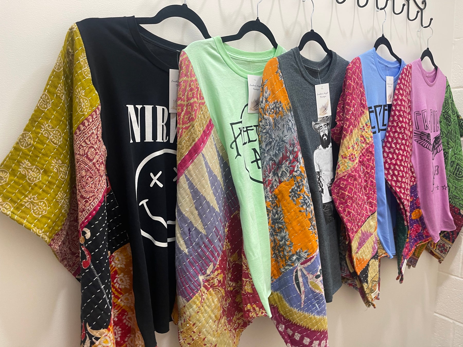Beautiful Kantha Patterns upcycled with graphic tees.